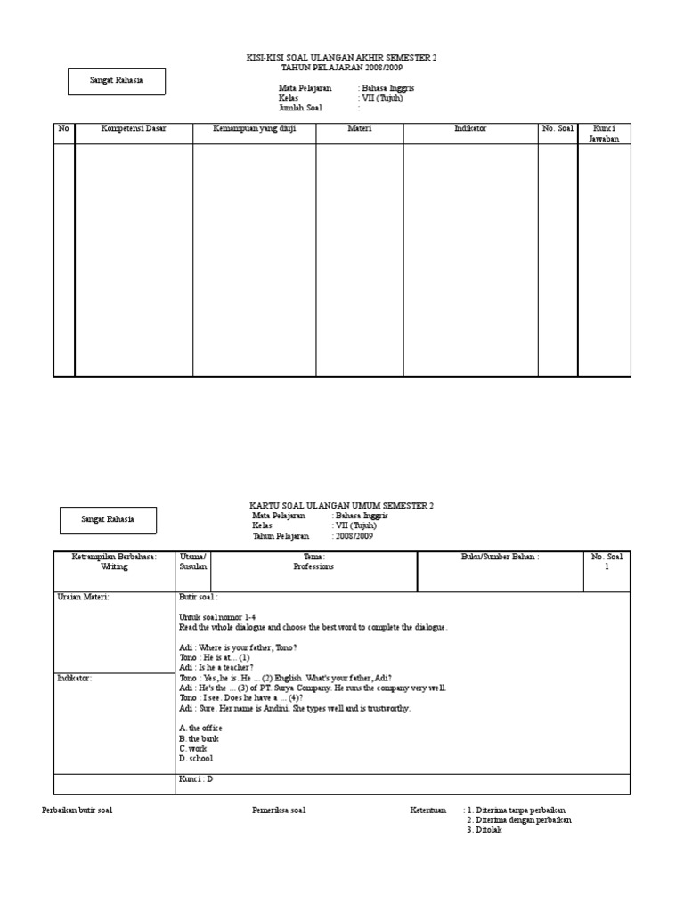 Norman meets mr amran, his english teacher, at 07.00 am. Panduan belajar unbk smp bahasa indonesia zenius blog. Penyusunan kisi kisi dan butir soal ppt download. Di kesempatan pagi ini, penulis akan posting contoh paket ujian sekolah. It was half past six in the morning. Soal pts bahasa inggris kelas 9. Berikut admin bagikan latihan soal penilaian tengah semester pts 1 bahasa inggris kelas 7 smp k13. Soal pas bahasa inggris kelas 8 k13.doc. Download kartu soal smp k13 bahasa inggris / kartu soal bahasa inggris smp kurikulum 2013 jawabanku id. Contoh soal pts smp kelas 8 bahasa inggris semester 2 k13. Latihan soal ini dapat digunakan peserta didik untuk membantu belajar dalam mempersiapkan diri menghadapi penilaian tengah semester (pts) 1. Kartu soal bentuk pilihan ganda jenis sekolah : Bahasa iggris tahun pelajaran :